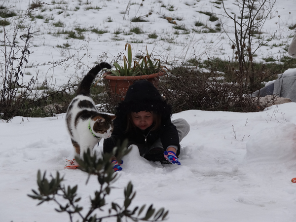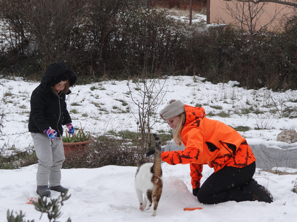 Suivons la construction d'un bonhomme de neige ... Tout est là, la neige ... et la carotte !!!