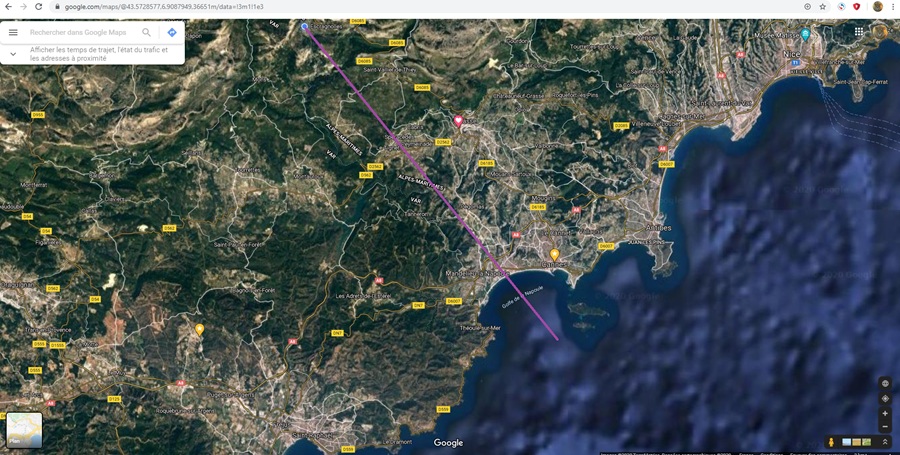 est située dans l'axe en violet ... Vue directe sur Mandelieu-la